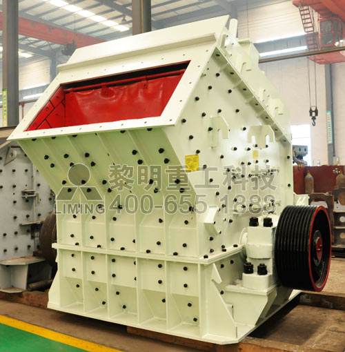 破碎機(jī)械利用沖擊能破碎物料。工作時(shí),轉(zhuǎn)子在電動(dòng)機(jī)的帶動(dòng)下高速旋轉(zhuǎn),物料由進(jìn)料口進(jìn)入,與轉(zhuǎn)子上的板錘撞擊,因受到板錘的高速沖擊而破碎,破碎后的物料又被反擊到襯板上再次破碎,達(dá)到細(xì)度要求后由出料口排出。