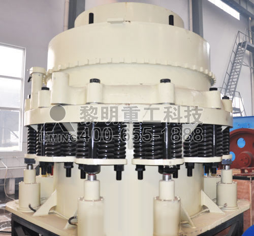 工作時,在動錐靠攏定錐的區(qū)段,物料受到動錐的擠壓、撞擊和彎曲作用,成為破碎腔;在動錐偏離定錐的地方,已被破碎的物料在自重作用下從錐底卸出,成為卸料口。電機通過液力偶合器、小圓錐齒輪驅(qū)動偏心套底部的大圓錐齒輪,使偏心套旋轉(zhuǎn),致使錐體作旋擺動而破碎物料。