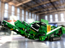 700-900mm的原料進(jìn)入J45顎破履帶移動破碎站進(jìn)行粗碎,而后粗碎后的物料進(jìn)入I44R反擊破履帶移動破碎站進(jìn)行二段破碎。二段破碎后,大于31.5mm的物料通過循環(huán)篩返料皮帶送回反擊破繼續(xù)破碎,31.5mm以下的混合料輸送到S130履帶式篩分移動站,經(jīng)過三層篩網(wǎng)的分離,最終分出0-5/5-10/10-20/20-31.5四種成品料。