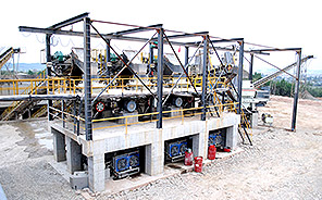 工程師為客戶配置了KE860-1粗碎移動站和KH300-2中細碎篩分移動站。當大塊石料進入料倉后,通過GZD1300×4900振動給料機進入PEW860歐版顎破初次破碎,后由皮帶輸送機將石料送入HPT300液壓圓錐破中碎,破碎后的石料被皮帶機運到3YZS1860振動篩進行篩分,篩分出成品料。