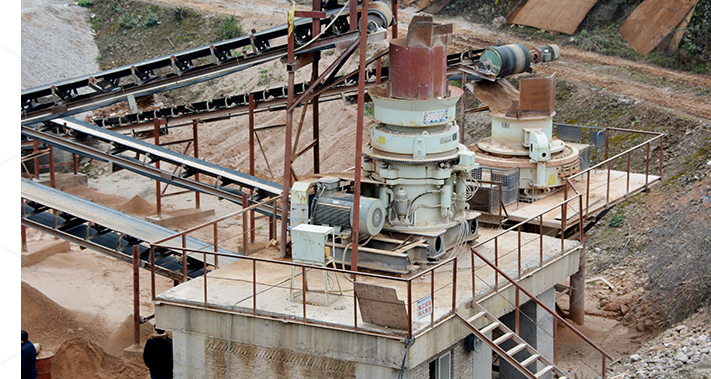 第二階段:中細碎輸送到反擊破/圓錐破中的玄武巖經(jīng)過中細碎后,利用圓振篩進行篩分,較大顆粒物料返送到反擊破/圓錐破再次破碎。