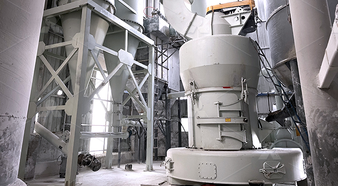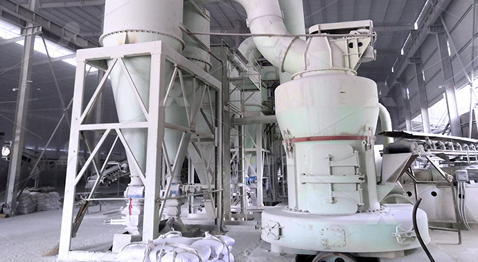 第二階段:磨粉破碎后的白云石小塊物料經提升機送至料倉,再經振動給料機將其均勻定量的送入磨機研磨室內進行研磨。