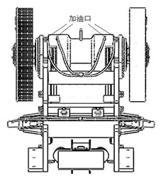 試機(jī)前必須確認(rèn)各連接螺栓已擰緊,確認(rèn)各活動部位已潤滑,潤滑站加油口位置(見右圖),潤滑方式采用干油集中潤滑站,干油集中潤滑站的結(jié)構(gòu)圖見附錄,潤滑油脂用通用鋰基潤滑脂或復(fù)合鈣基潤滑脂。