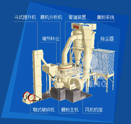 非金屬礦制粉工藝所需設(shè)備有:電磁振動給料機(jī)、顎式破碎機(jī)、非金屬礦磨粉機(jī)、斗式提升機(jī)、皮帶輸送機(jī)、電控系統(tǒng)等,為達(dá)到理想的環(huán)保效果,還可配備脈沖除塵器。