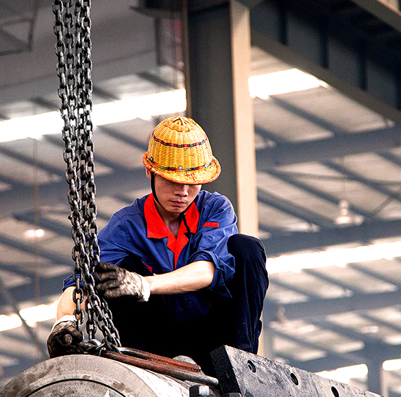 趙師傅整日和車間里的大家伙們“交鋒”。不足10℃的生產(chǎn)車間里,他正在固定10多噸重動(dòng)顎體上的吊裝環(huán),鼻子上滲滿汗珠。大家伙們的未來他不在意,他更在乎的是他們的現(xiàn)在,能不能對(duì)得起自己的“手藝”。